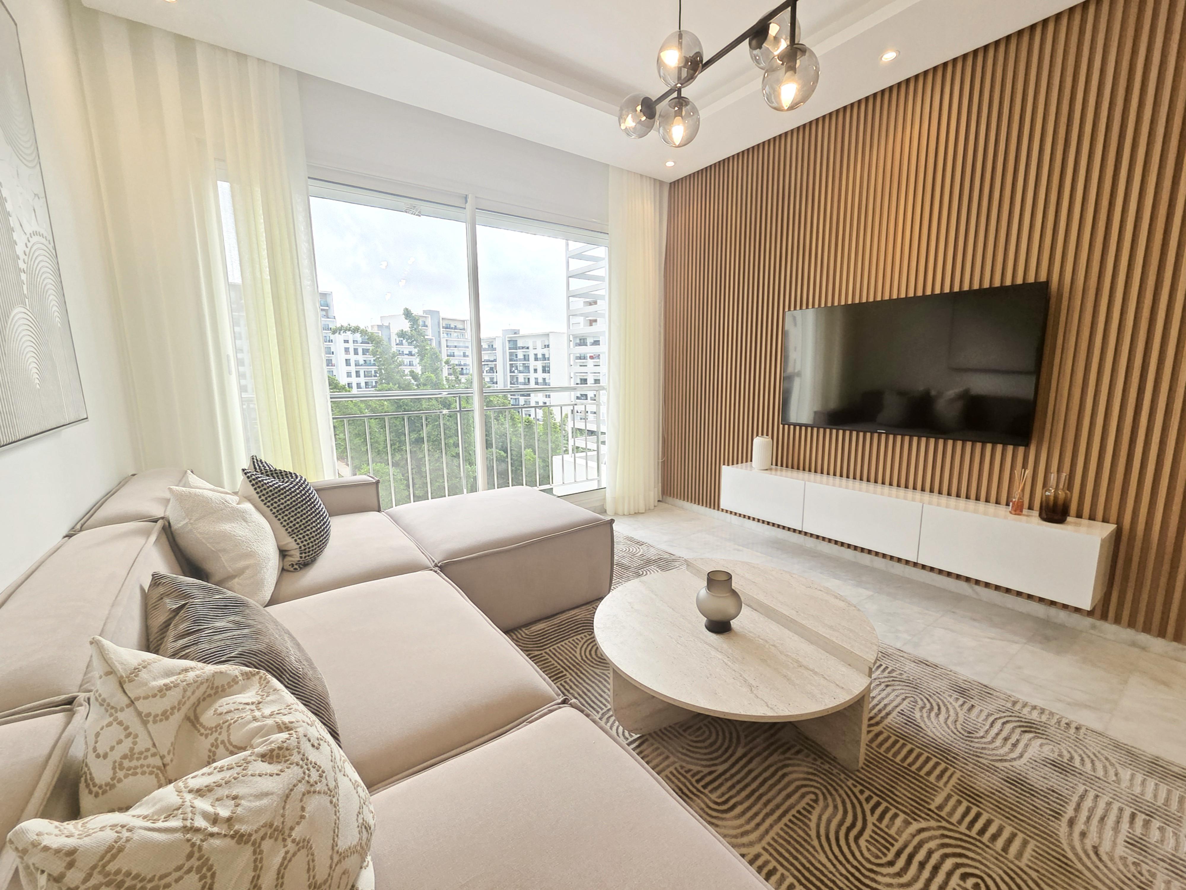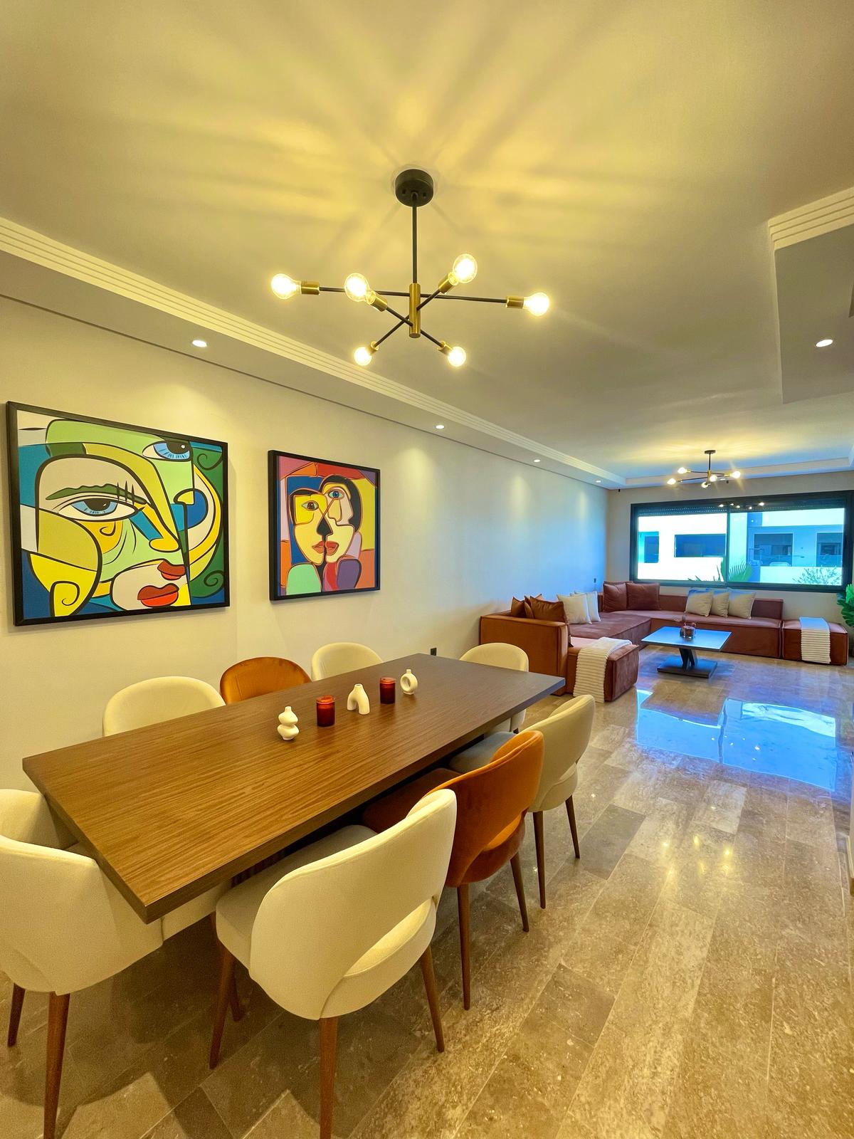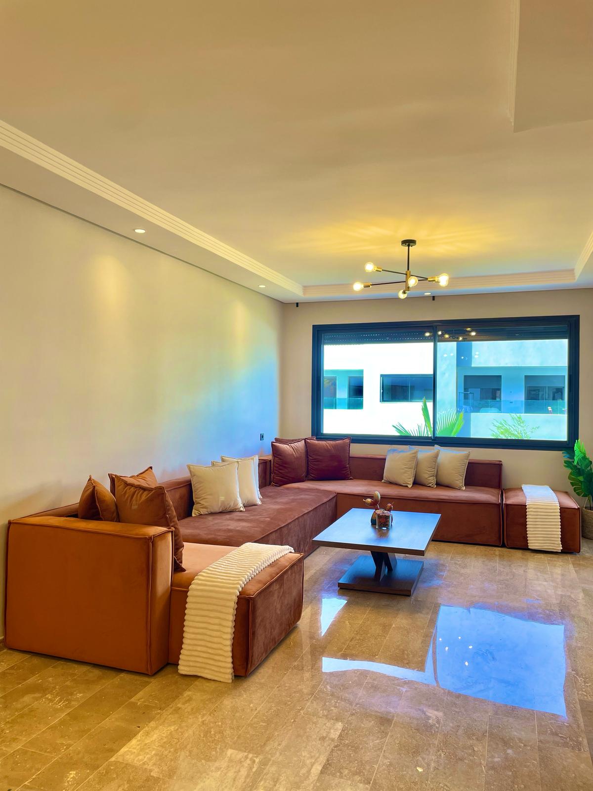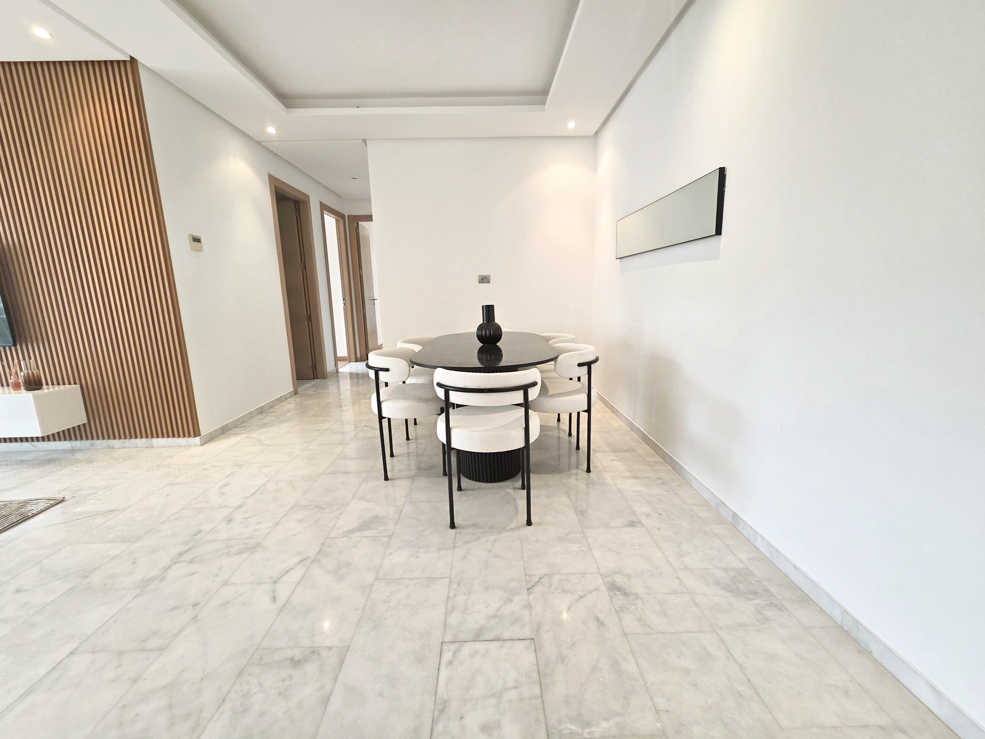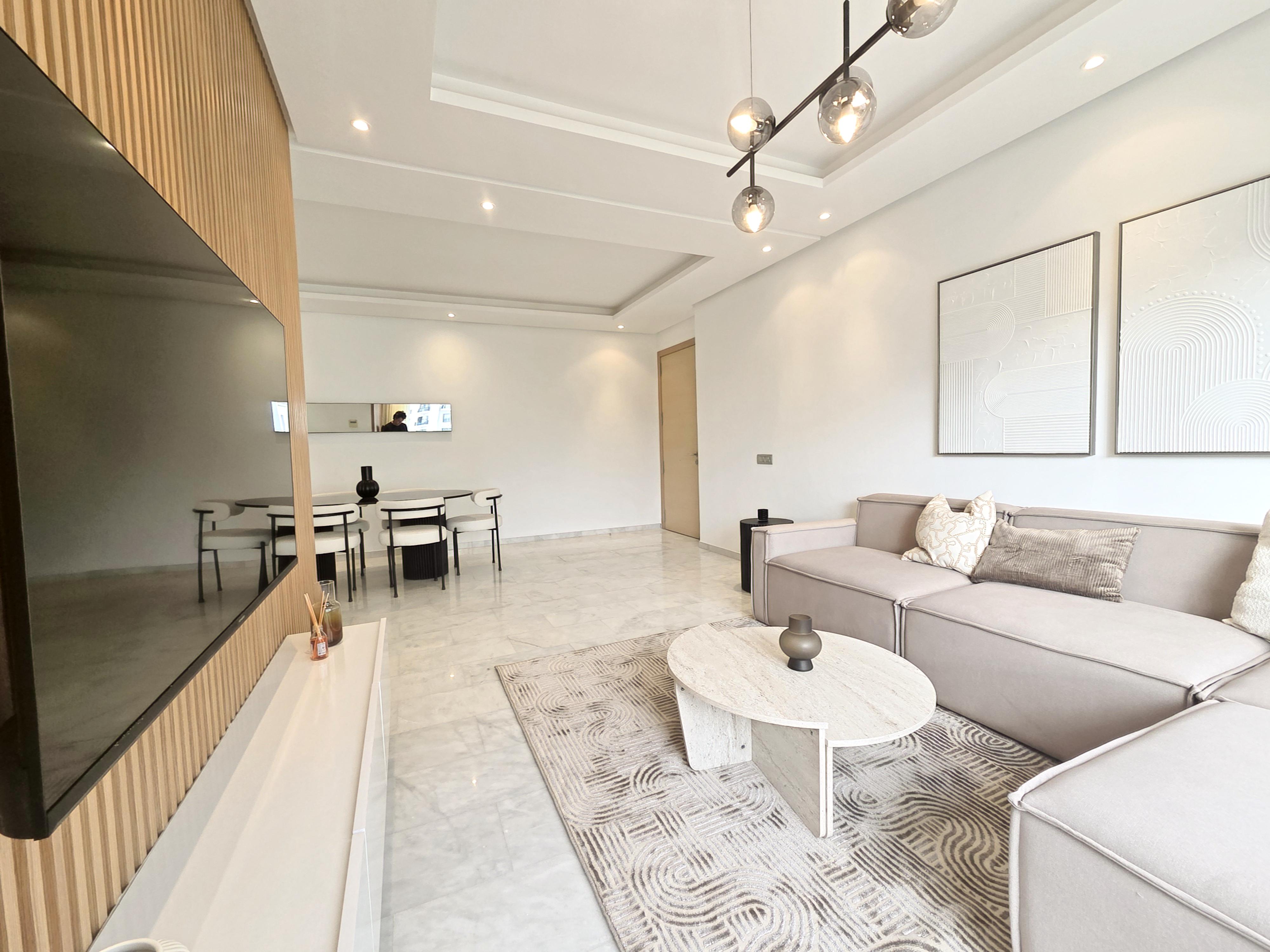 Superbe appartement lumineux à louer, situé dans une résidence haut standing Prestigia au cœur du quartier Hay Riad. Entièrement ouvert sur l’extérieur, il bénéficie de grandes baies vitrées et de balcons dans toutes les pièces, offrant une vue dégagée. Un logement idéal pour un couple ou une famille recherchant confort et sérénité.